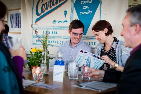 Last summer Ceviche hit the road for two weeks on Britain's first ever pop up restaurant tour visiting 10 restaurants in 10 locations across three countries: Scotland, England and Wales. We partnered with The White Lion in Aldeburgh, Brighton's Moshimo, The Ethicurean in Bristol, Jacob's Antiques Market in Cardiff, Padstow's Seafood School, David Kennedy's River Cafe in North Shields, Teacup on Thomas Street in Manchester, The Marches and The Fish House in Ludlow, Ardkinglas House Castle in Loch Fyne and Restaurant Mark Greenaway in Edinburgh. See highlights from Bristol, Brighton and Manchester. 50 food lovers in each location had the chance to try some of the wonderful dishes from our new cookbook in a unique one off menu and one off night. Thank you so much to all our restaurant partners and to all our fantastic customers who came out to see us and enjoy our tour. Here's a video that shows how we got all this started: http://www.youtube.com/watch?v=ZXRYj4tPjRM